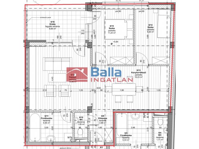 Egyéb tulajdonságok: erkély (9 m²), külön wc, lift (1 db)