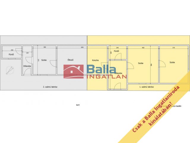 80 m² terület 2 + 2 félszoba