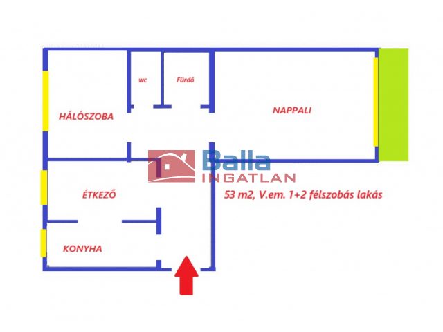 54 m² terület 2 szoba