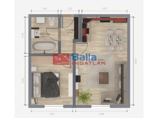 49 m² terület 2 szoba